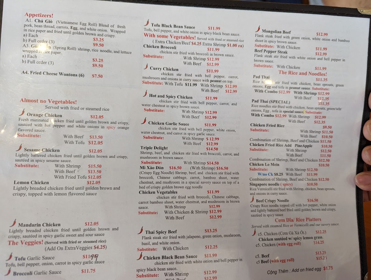 The menu features classic Vietnamese staples such as the fragrant Pho Ga with fresh herbs, the hearty Beef Pho, and delicate Spring Rolls that serve well as light starters or alongside a main dish. For those who appreciate a bit more variety, options like Triple Delight or Singapore Noodles offer a balanced combination of flavors and textures that feel just right for lunch or dinner.